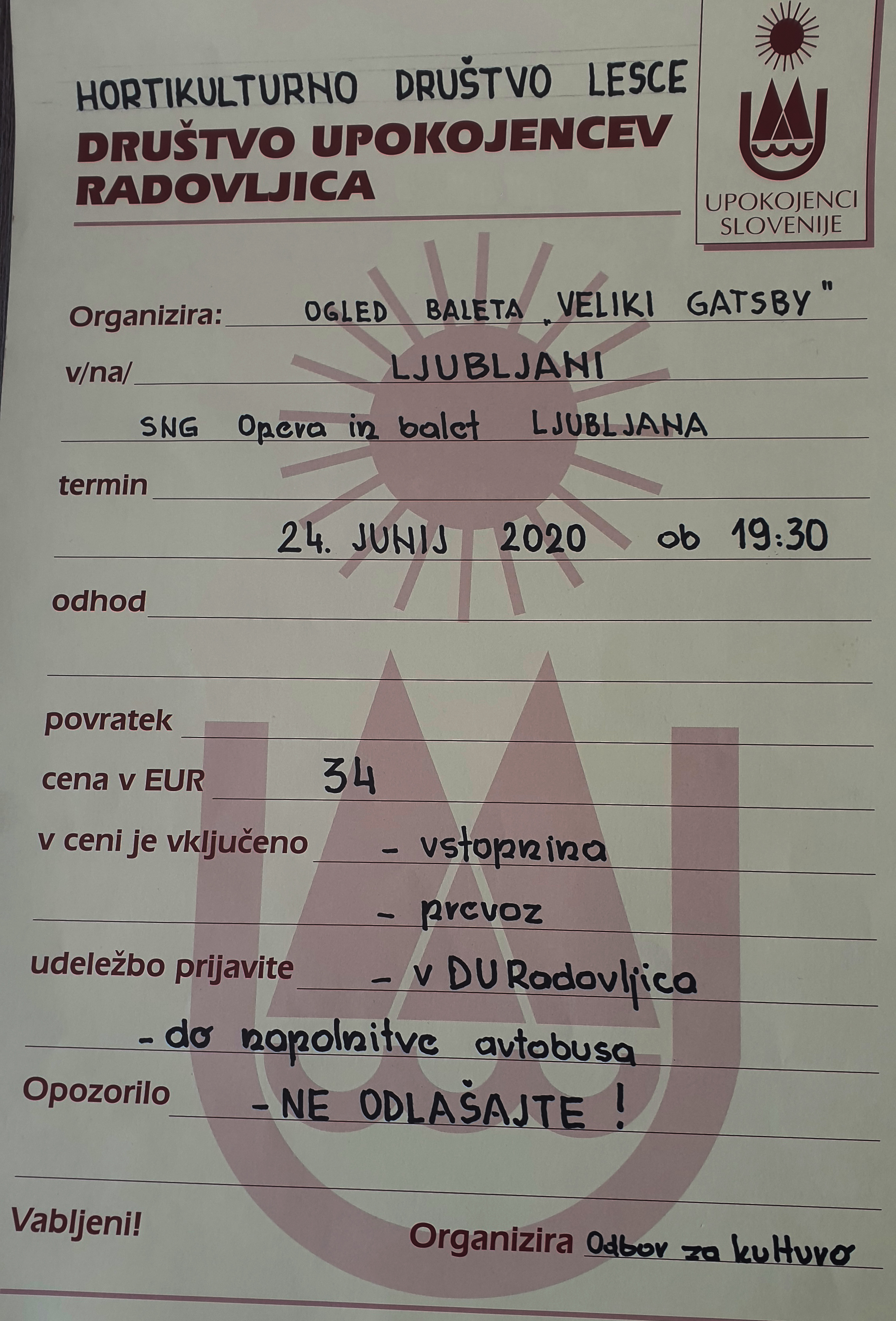 Skupaj s Hortikulturo Lesce organiziramo ogled baleta