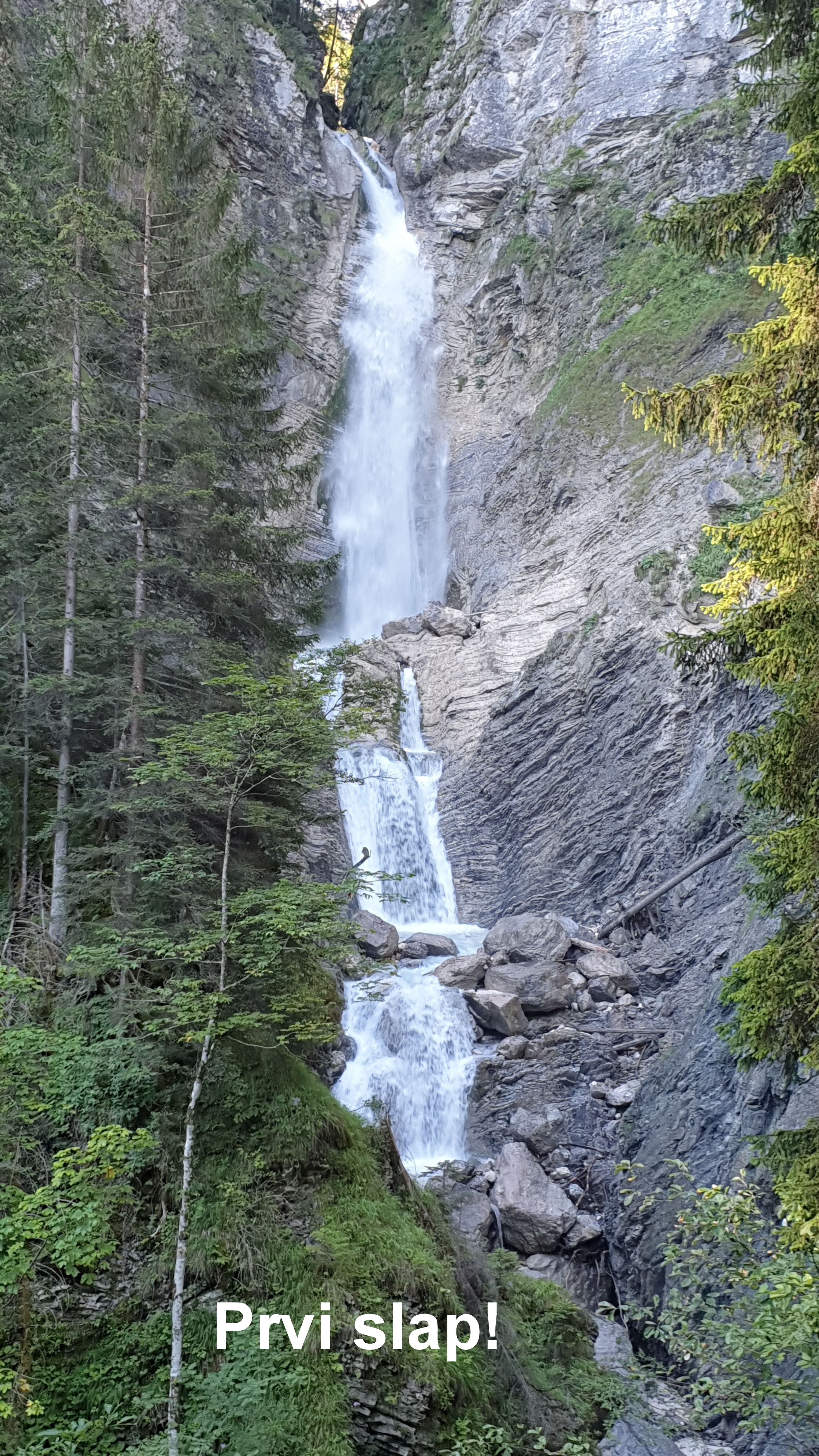 Na vrhu stopnic nas je pričakal za ogled prvi slap. Oz. filozofi bi dejali, da nikoli