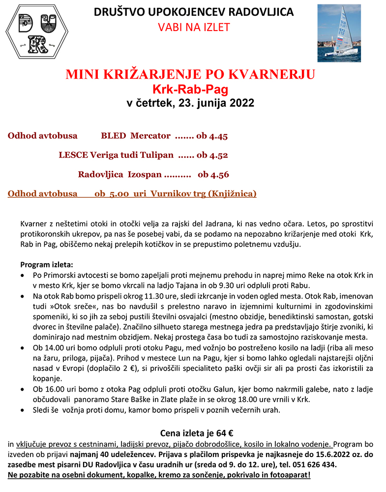 Kvarner z neštetimi otoki in otočki velja za rajski del Jadrana, ki nas vedno očara. Letos, po sprostitvi protikoronskih ukrepov, pa nas še posebej vabi, da se podamo na nepozabno križarjenje med otoki Krk, Rab in Pag, obiščemo nekaj prelepih kotičkov in se prepustimo poletnemu vzdušju.