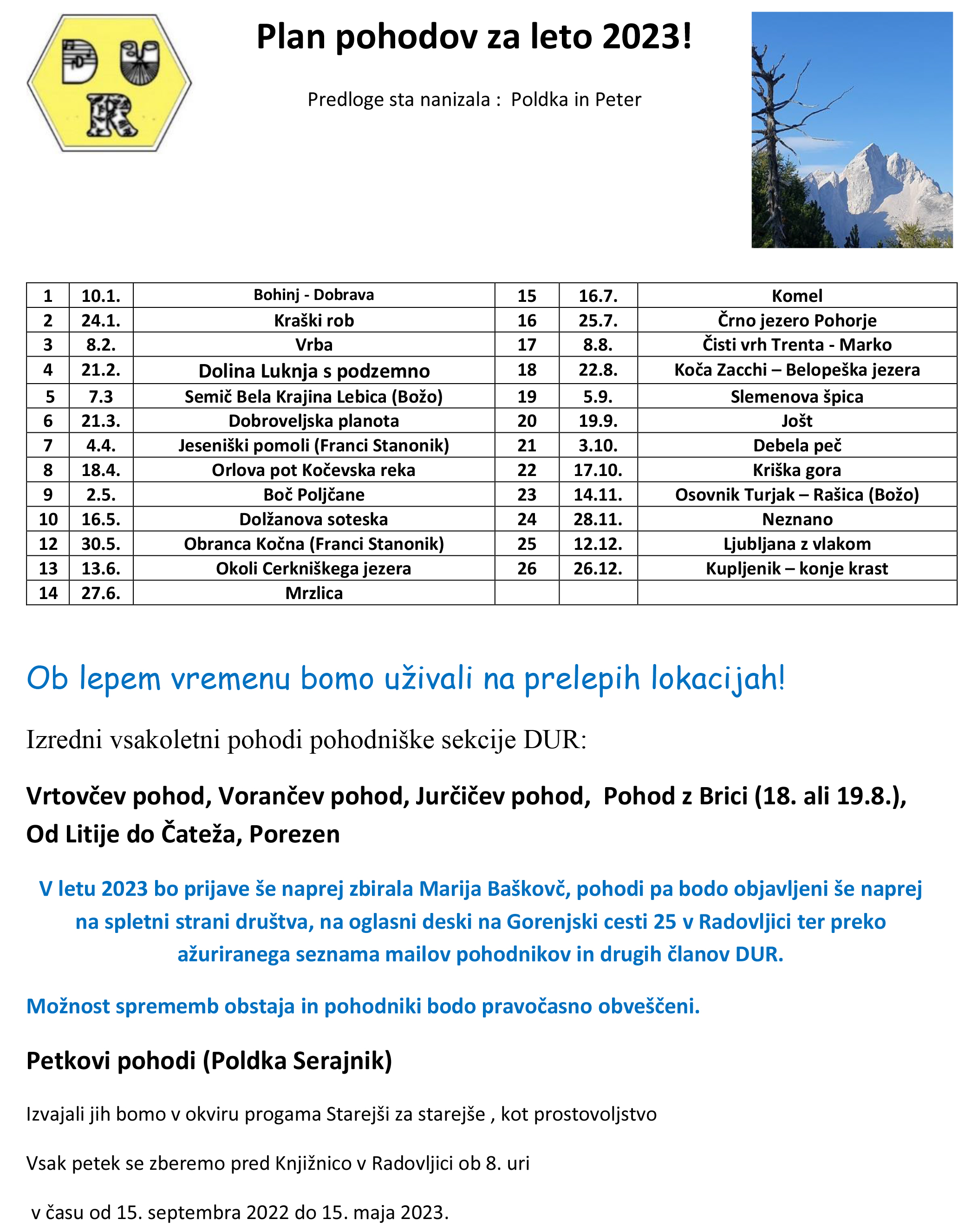 Plan pohodov za leto 2023