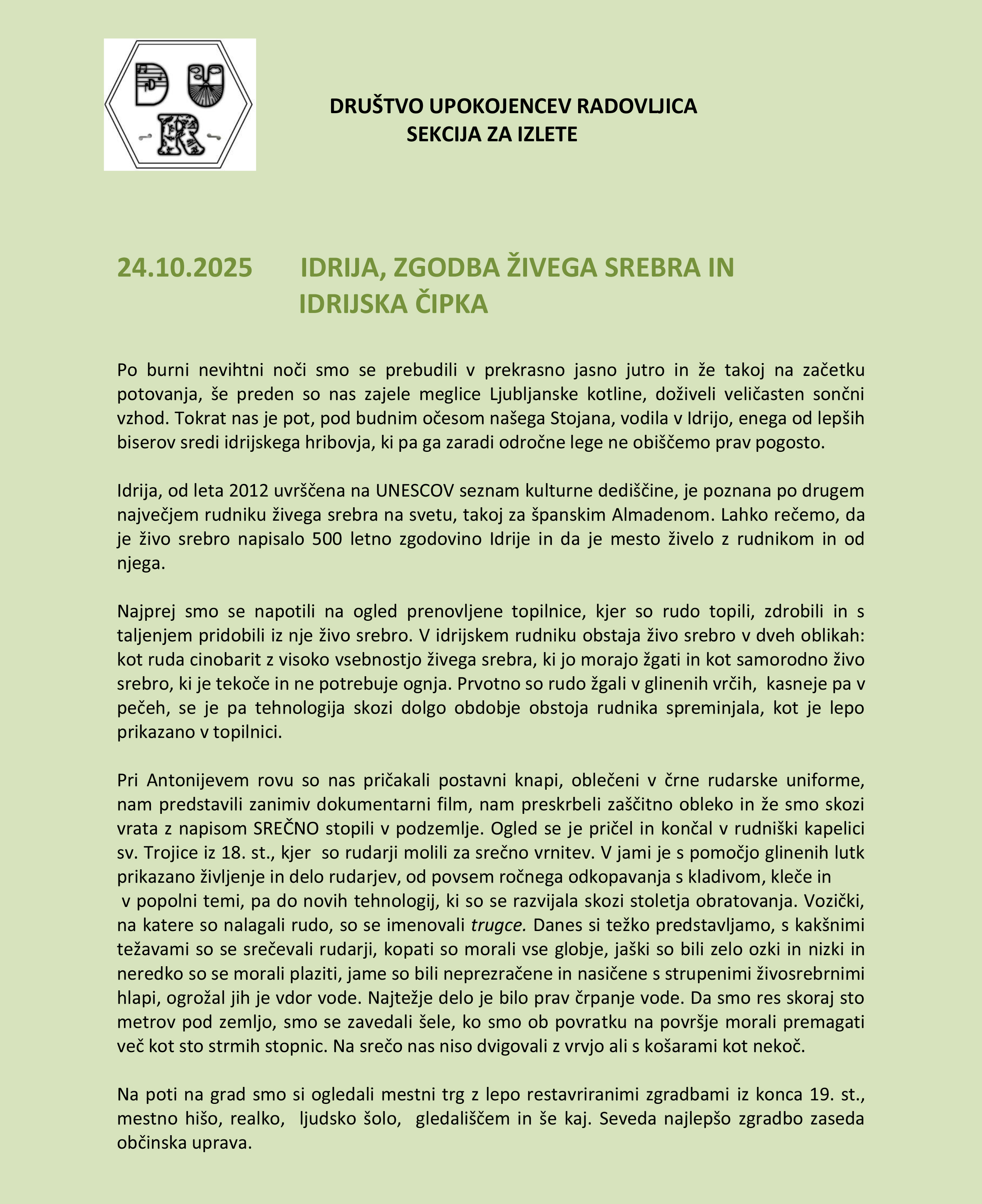 24.10.2025 IDRIJA, ZGODBA ŽIVEGA SREBRA IN