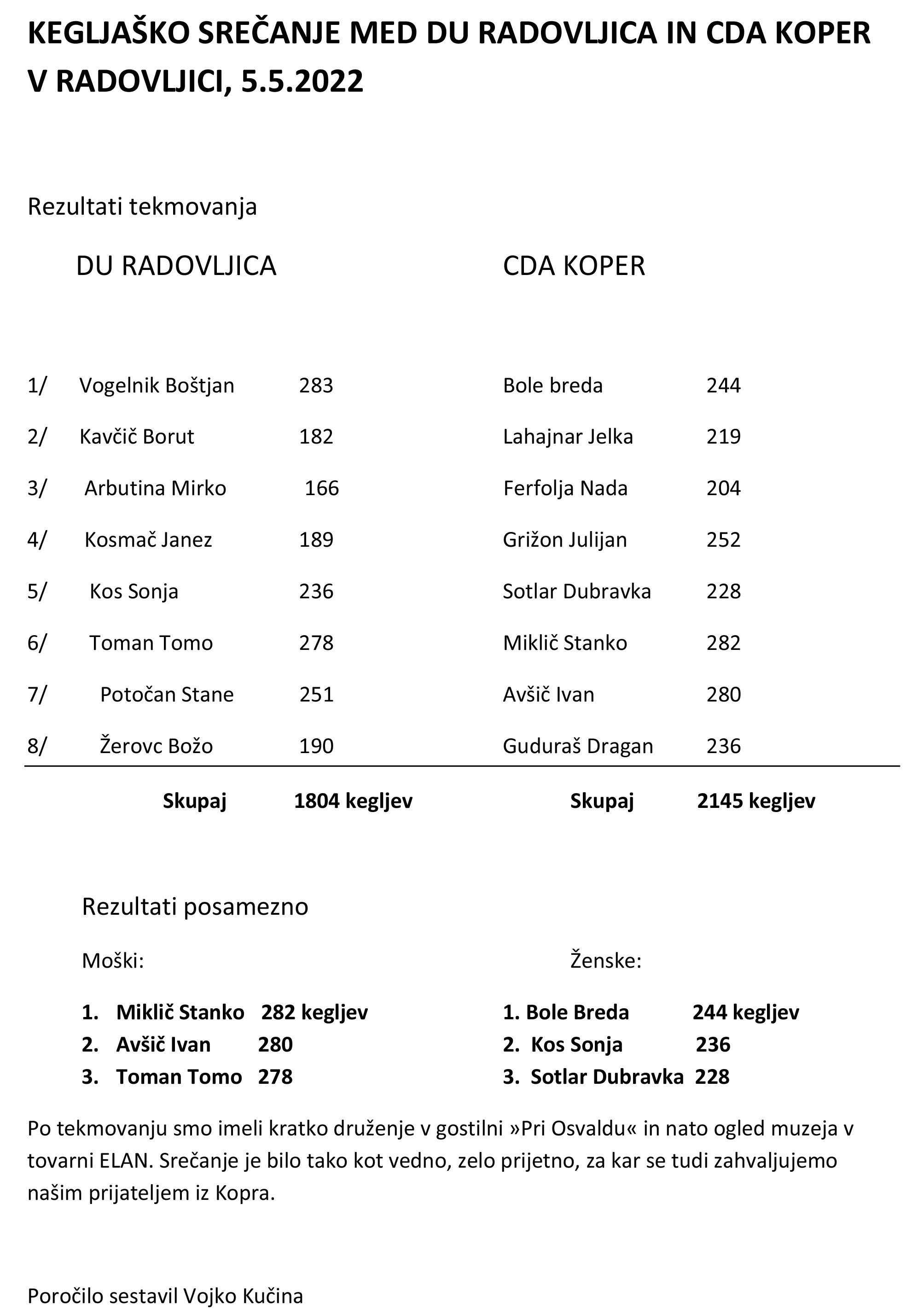 CDA KOPER V RADOVLJICI v četrtek, dne 5. maja 2022.