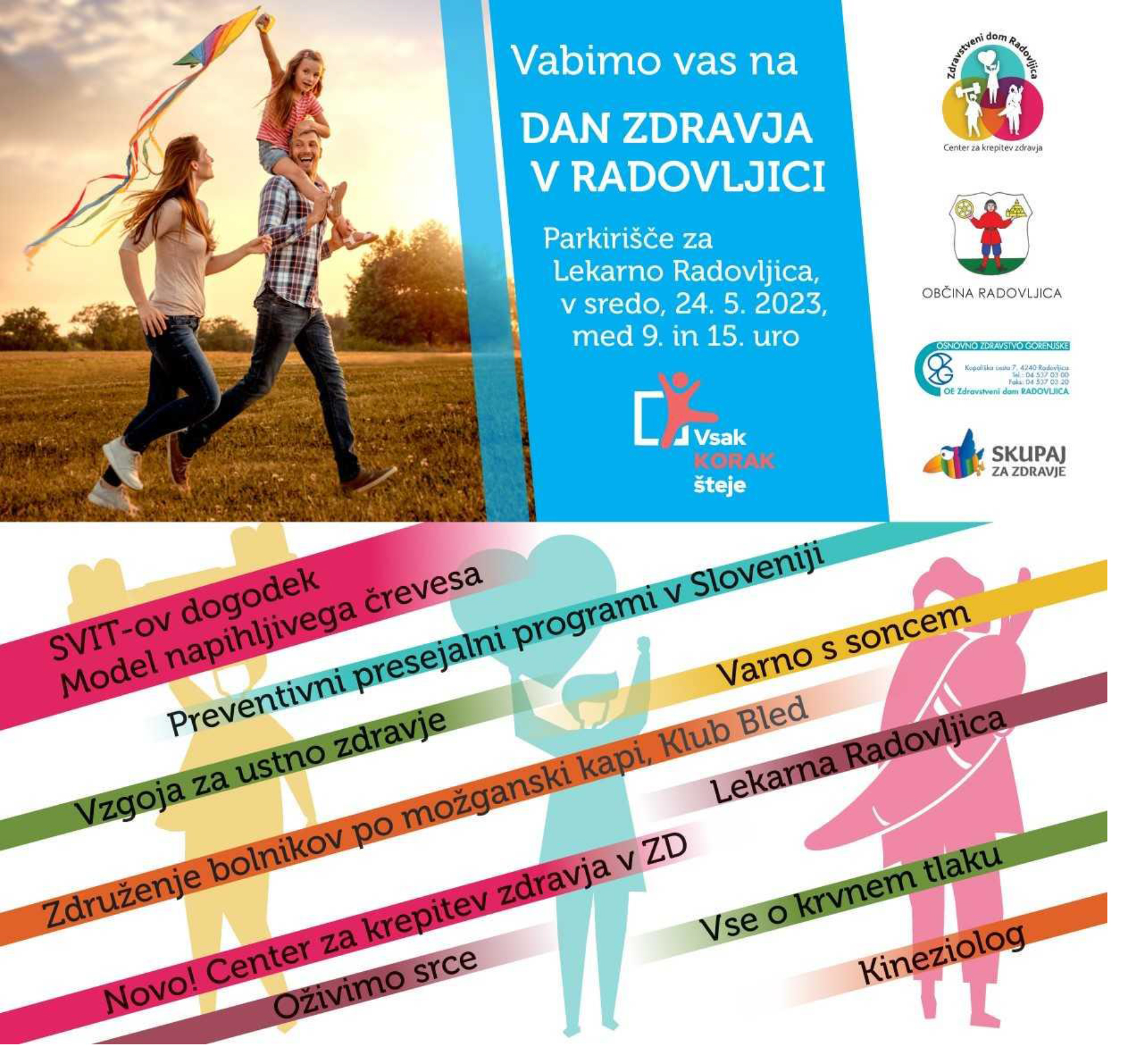 Jutri v sredo, 24. maja od 9.00 do 15.00 vas Zdravstveni dom Radovljica vabi na zelo zanimiv dogodek, DAN ZDRAVJA. Stojnice bodo postavljene na parkirišču za Lekarno Radovljica. V primeru dežja se bodo preselili v klet ZD – VHOD IZ PARKIRIŠČA PO STOPNICAH . V telovadnici ZD pa se boste lahko sprehodili skozi model Svitovega napihljivega črevesa.