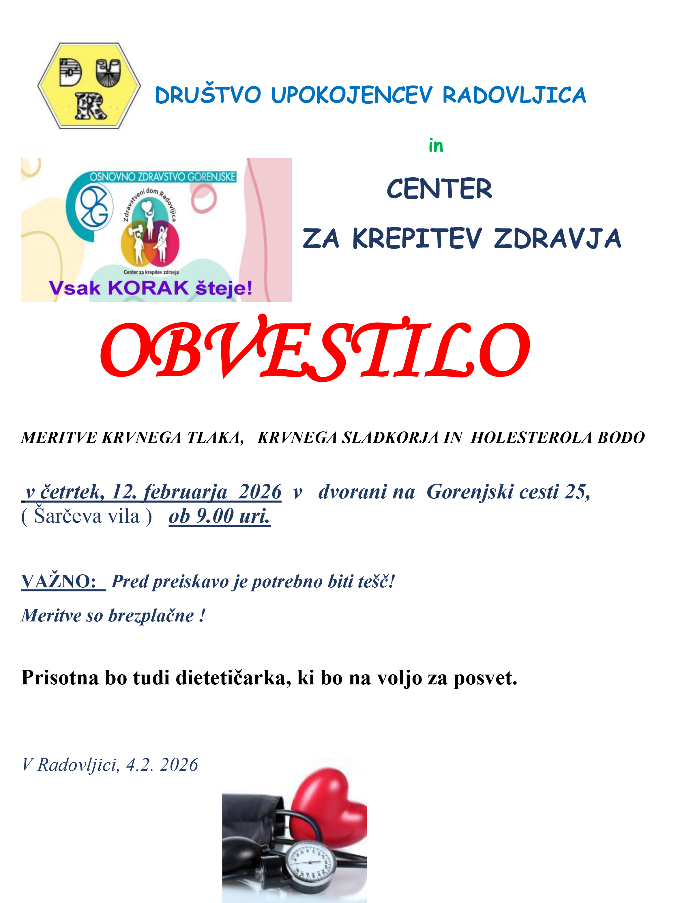 ZD Radovljica. Kdaj? V četrtek, dne 12. feb. 26 … Glej spodaj!